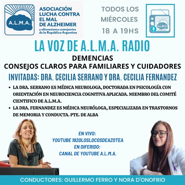 Conversamos sobre el tema con dos excelentes profesionales, las Doctoras Cecilia Serrano y Cecilia Fernandez. Ambas son Médica Neuróloga. La Dra. Serrano está doctorada en psicología con orientación en neurociencia cognitiva aplicada e integra el Comité Científico de A.L.M.A. Y la Dra. Fernandez está especializada en trastornos de memoria y conducta y es la presidente de ALBA. A partir del recorrido y experiencia profesional de ambas, hablamos sobre demencias en general, y brindaron información útil y relevante para todas las familias.
