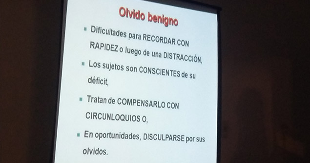 La Dra. Serrano abordó el tema de los olvidos diferenciando aquellos benignos de los patológicos: “olvidarse es como la fiebre, todos podemos tenerla, hay que indagar cuál es la causa”.
