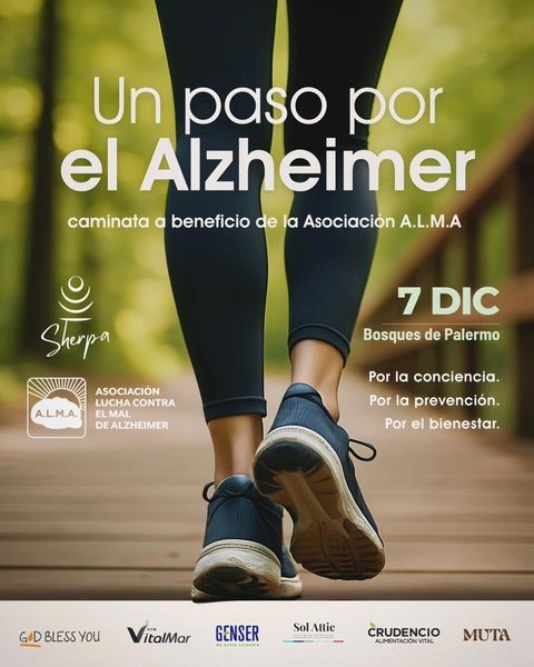 La Asociación A.L.M.A. y Sherpa se unen este 7 de diciembre para realizar “Un paso por el Alzheimer”, una caminata solidaria en los Bosques de Palermo, con el propósito de visibilizar, acompañar y generar conciencia sobre la importancia del movimiento y el bienestar en la salud mental y especialmente en la neurolongevidad.